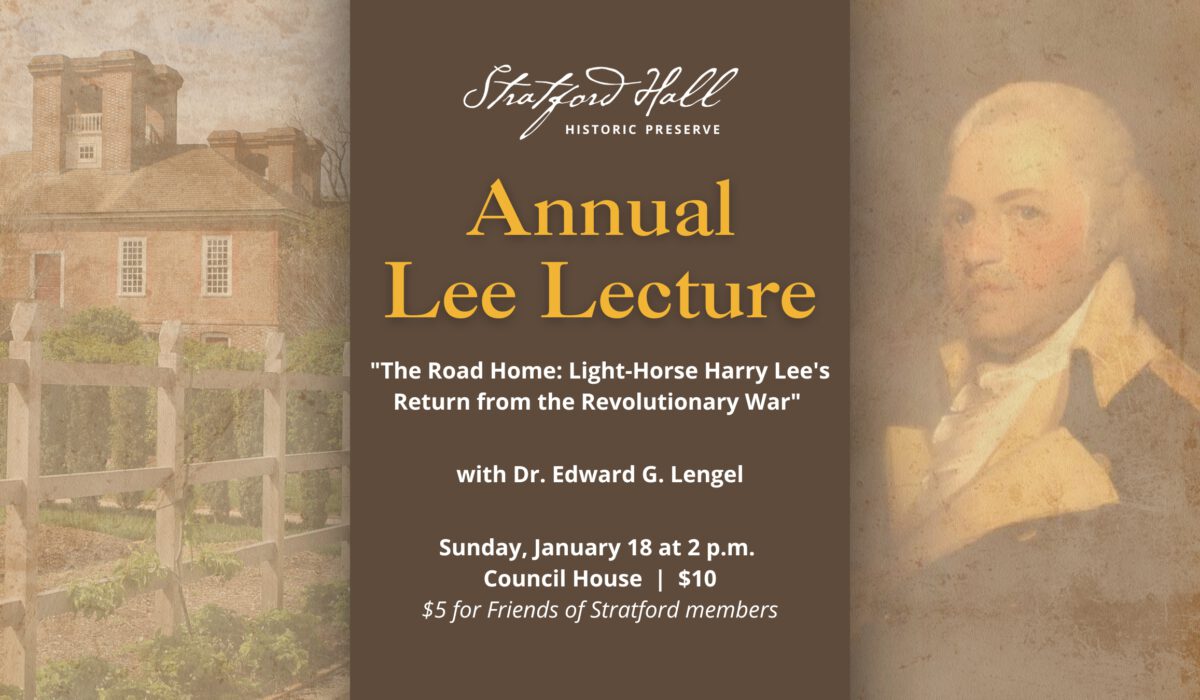 War hero. Virginia Governor. Father of Robert E. Lee. In advance of his new book on Henry Lee III, Dr. Edward G. Lengel will help us to understand the challenges “Light-Horse” Harry Lee faced in his personal life, business, and the young country’s fiercely divided politics in the 1780s and 1790s. Join us in the Council House for this can’t-miss lecture to start off America’s Semiquincenntial at Stratford Hall. This lecture may be joined virtually, in which case a Zoom Webinar link will be sent to registrants who select “Virtual Admission” prior to the event. Members can receive their discount code by calling (804) 493-8919 or emailing rpitts@stratfordhall.org.