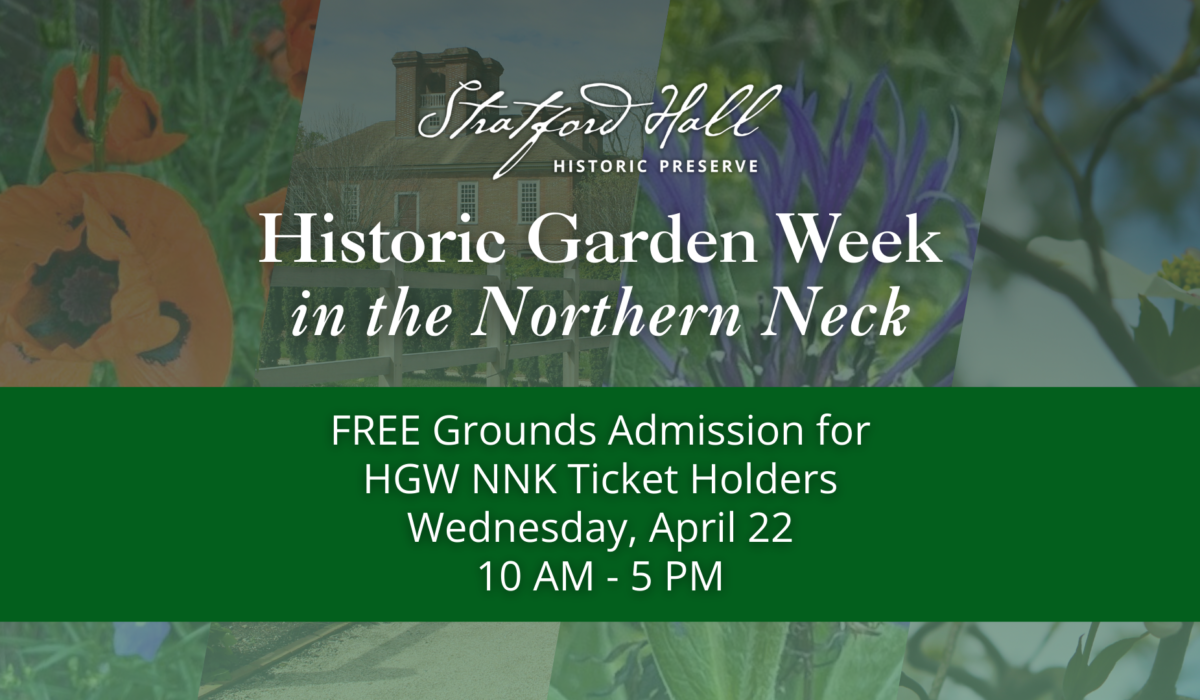 Stratford Hall is honored to once again participate in the Garden Club of Virginia’s Historic Garden Week! On Wednesday, April 22 from 10 a.m. to 5 p.m., Garden Club of the Northern Neck ticket holders receive FREE grounds admission (Great House self-guided audio tours not included). Simply arrive at the Visitor Center and show your ticket! Explore the restored East Garden and browse our Plant Sale, offered April 4 – 26. A selection of heirloom vegetables, culinary herbs, perennials, trees, and shrubs–straight from the Stratford Hall greenhouse–will be on sale at the Gift Shop. The selection of plants will vary during the sale, so come back weekly for new items!