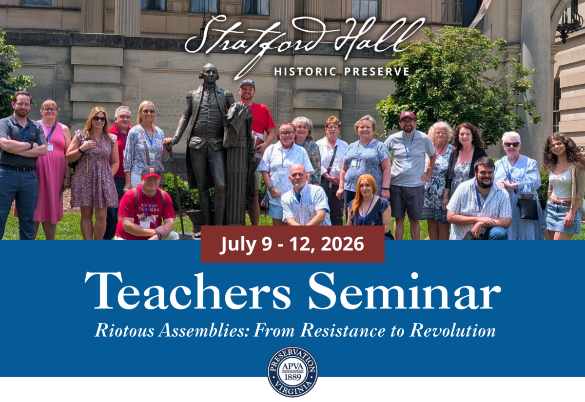 Stratford Hall and Preservation Virginia are delighted to announce their 2025 Teachers Seminar, Revolutionary Stuff, a multi-day continuing education event for teachers of history and...